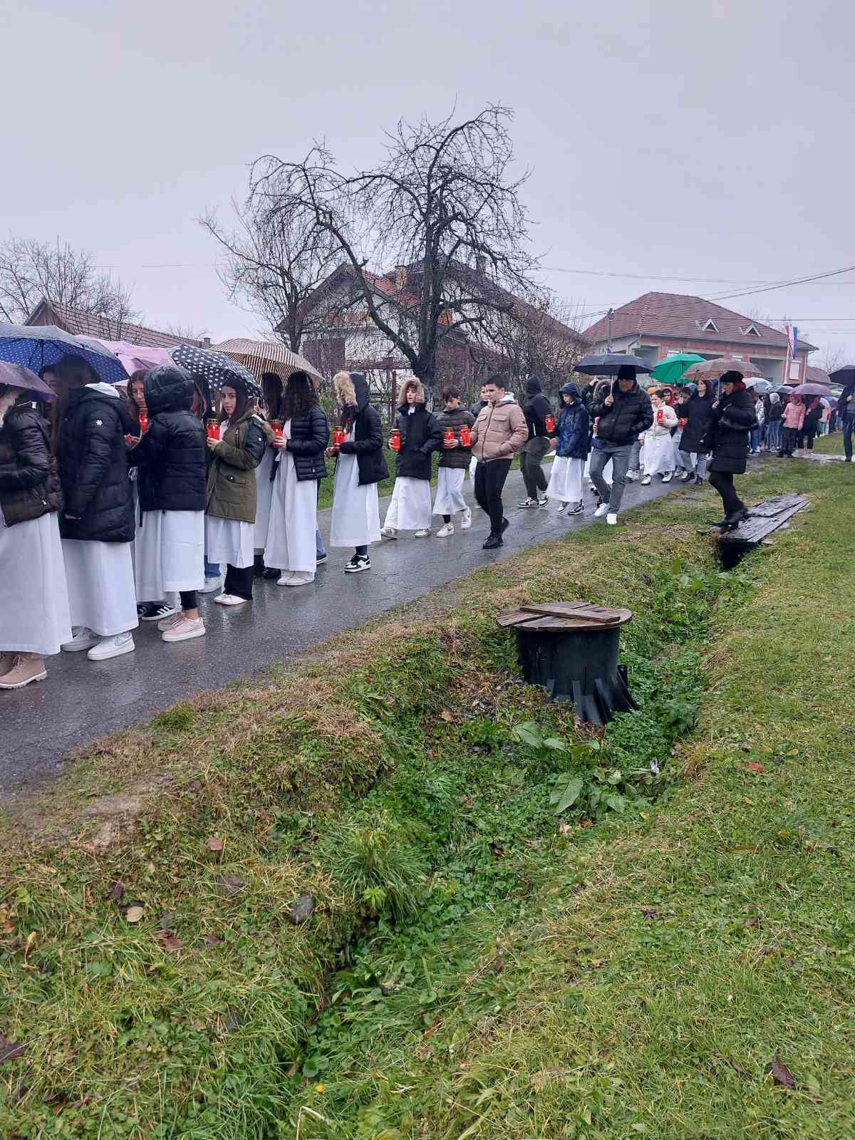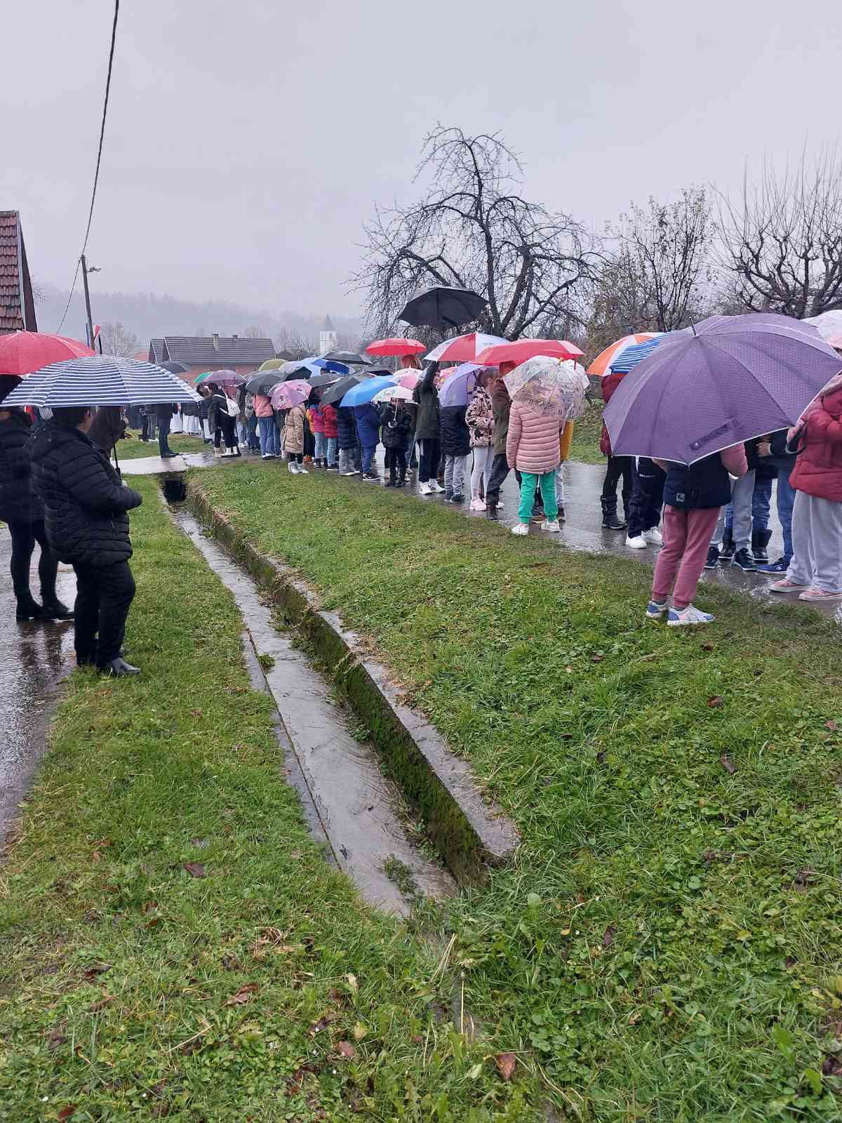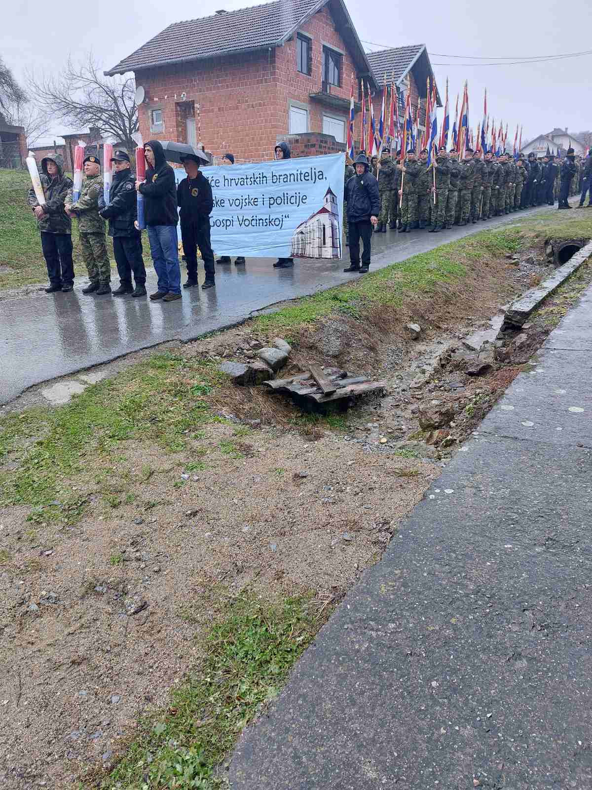 Po kišnom danu sastali smo se na Prebendi gdje nas je pozdravio biskup msgr. Antun Škvorčević koji je izraze posebnog poštovanja i suosjećanja uputio obiteljima voćinskih žrtava i poginulim braniteljima.